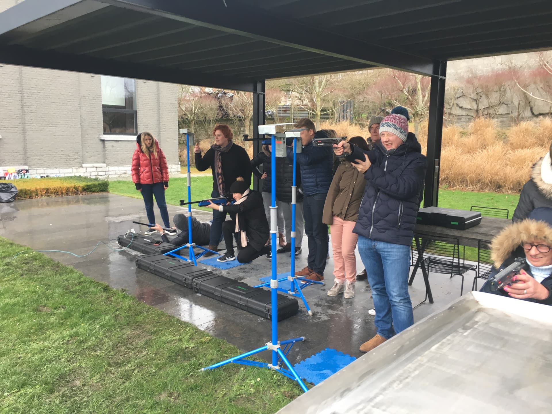 Infrared biathlon rifle and pistol shooting: space of 6m by 12m.