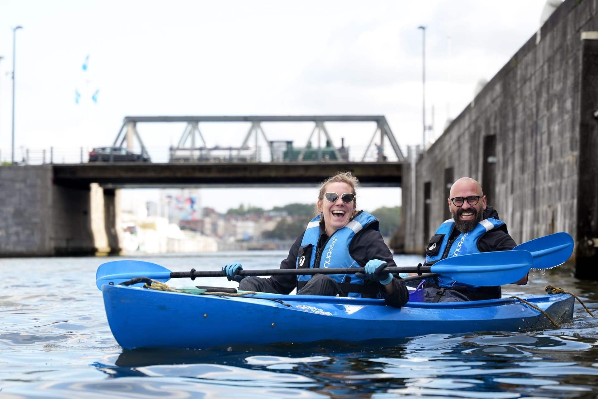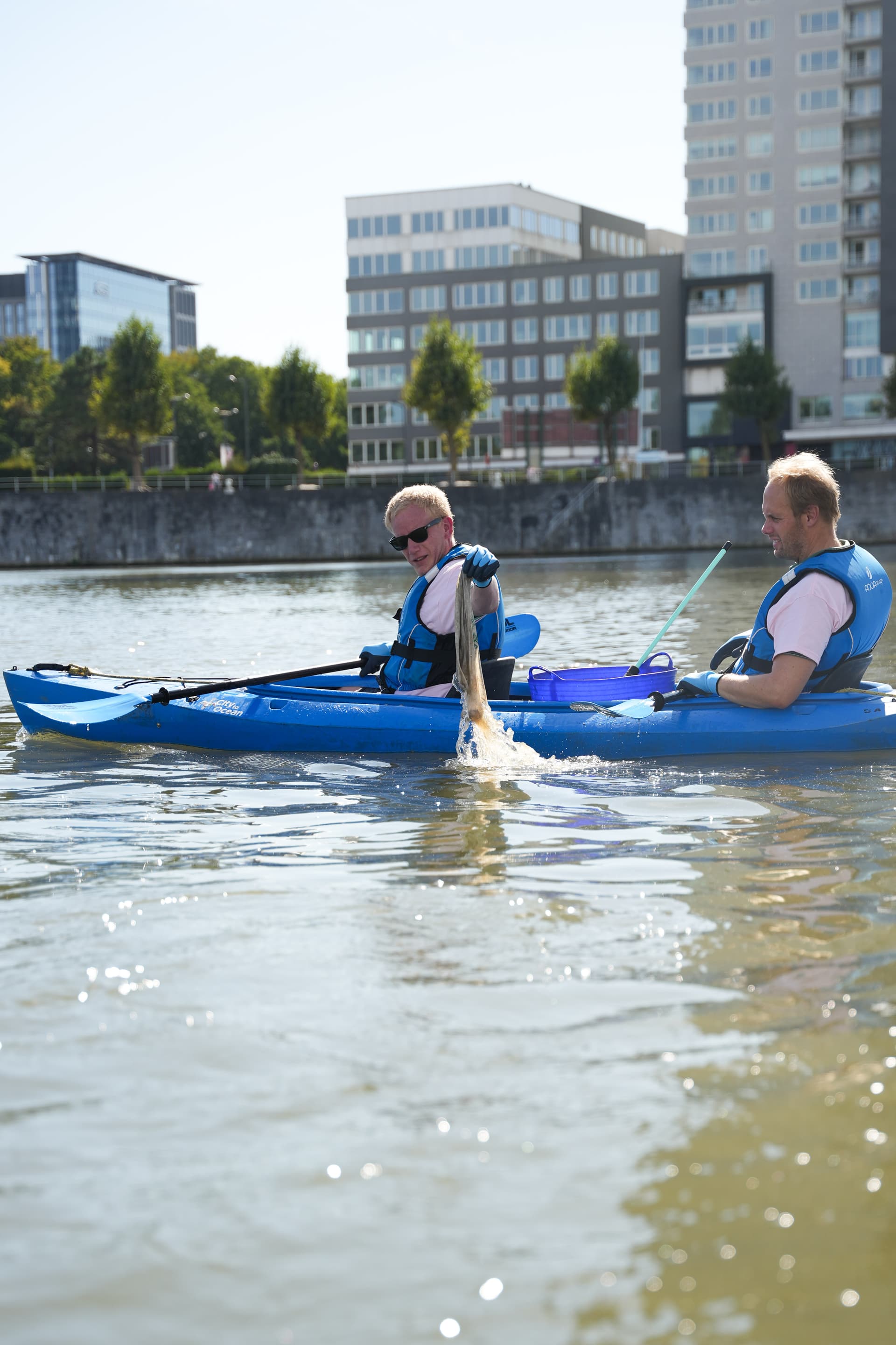 Our fleet of 10 kayaks accommodates up to 20 rowers at the same time on the water. For larger groups (up to 60 people), we switch combined with a quay cleanup for an even bigger impact!