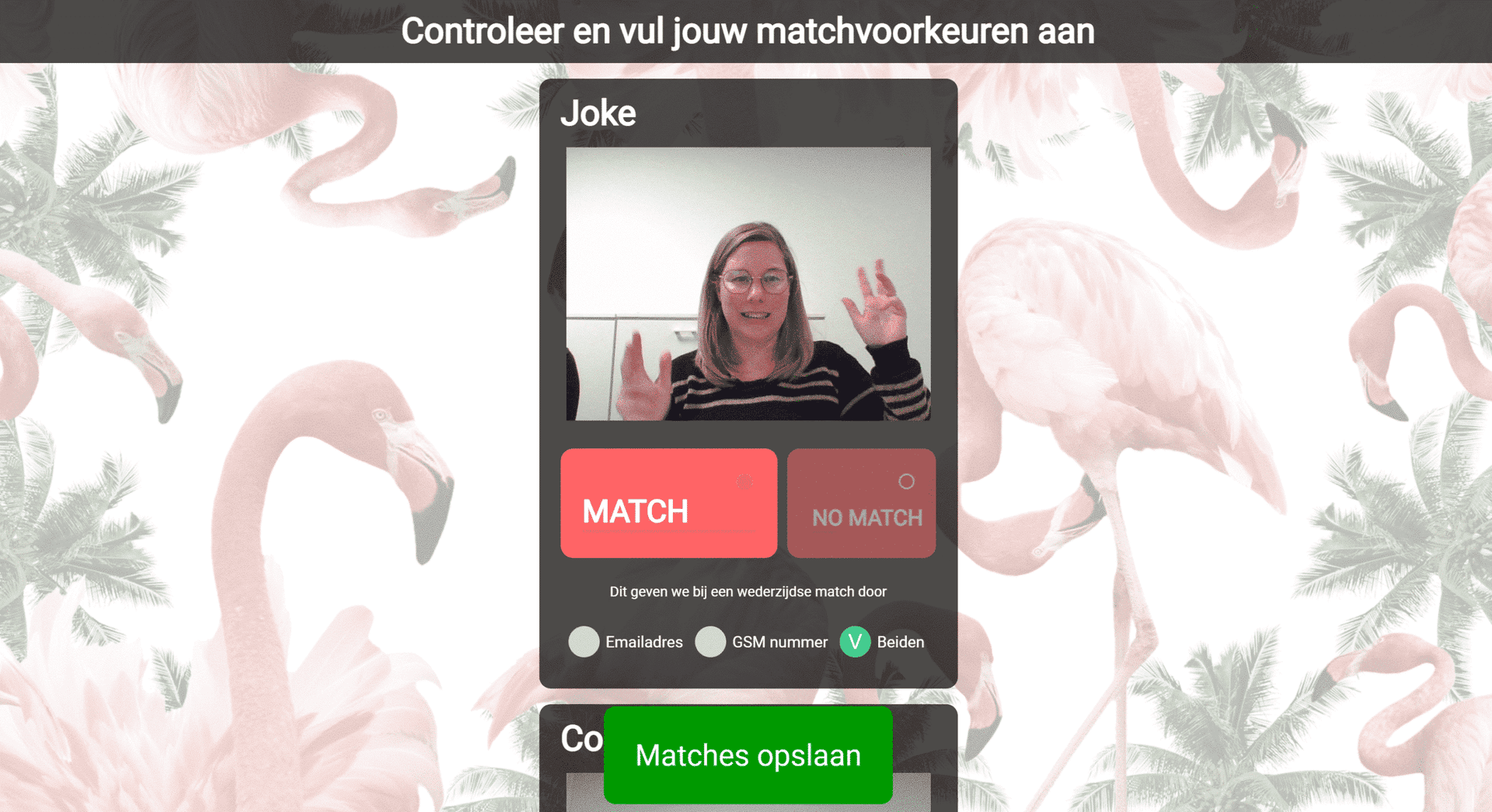 If so desired, it is also possible to split a group in two so that the one group only sees participants from the other. (for instance, 2 departments getting to know each other, employers vs job applicants, investors vs start-ups, men vs women, etc.
