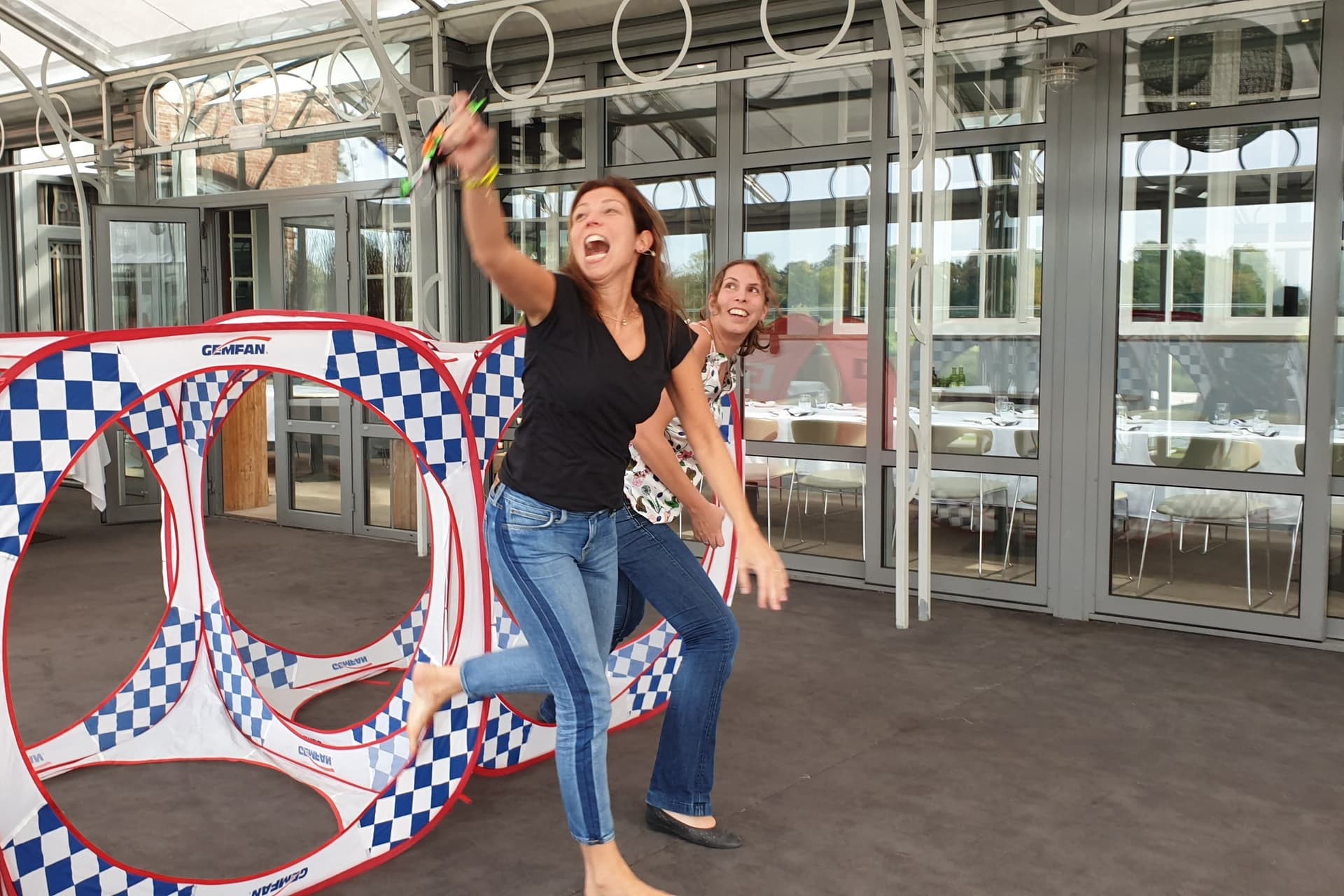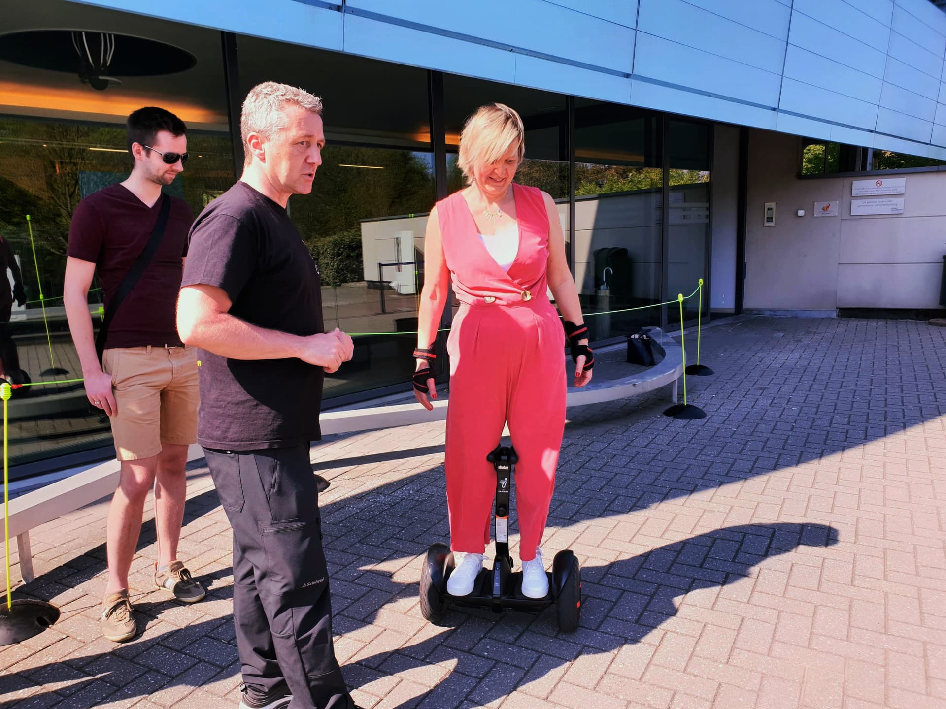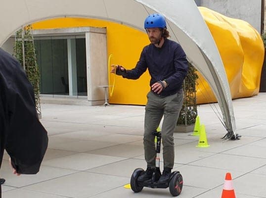 With our muscles warmed up, it’s time to test our balance and start the mini-Segway initiation (indoors or outdoors, your choice). Mini-Segways combine the safety of large Segways with the fun of a hoverboard. After just 1-2 minutes of safe practice, everyone will grasp the basics, allowing us to add a fun challenge to the mix.