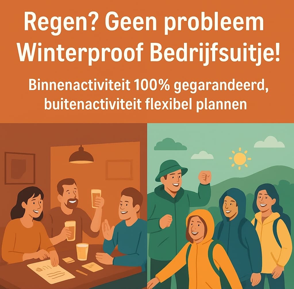 With us, you are guaranteed a successful outing. Choose an outdoor activity, and if the weather doesn't cooperate? No worries! Then you simply do our cozy Pub Quiz. This way, you always have a fun program, indoors or outdoors, rain or shine. So book without risk – fun guaranteed, no matter what the weather does.