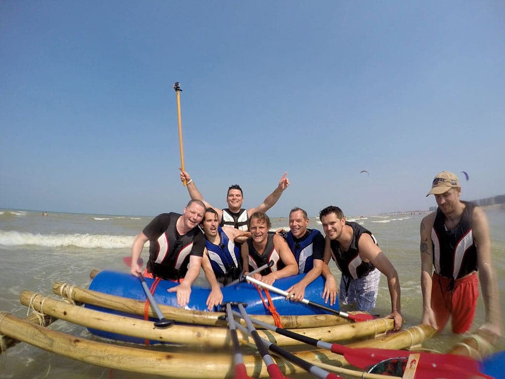 Une activité aventureuse à la côte où la collaboration est centrale. La partie la plus amusante est sans aucun doute le moment où votre radeau est testé sur l'eau. Quel radeau traversera le plus rapidement la vague? Si la mer est un peu plus calme le jour de votre activité, nous vous défierons avec de nombreux tests d'habileté et de coopération. Plaisir garanti lors de cette activité stimulante!