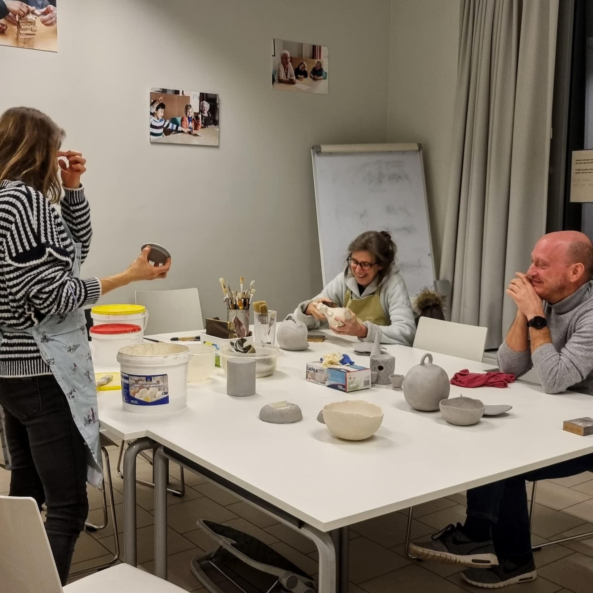 Aucun prérequis n’est nécessaire. Venez juste avec l’envie de vous détendre et votre bonne humeur. Nous travaillons avec de la terre glaise qui provient de Belgique et qui sera cuite à 1250°. La pièce personnelle est émaillée avec un émail transparent. La pièce collective reste brute et sans émail.