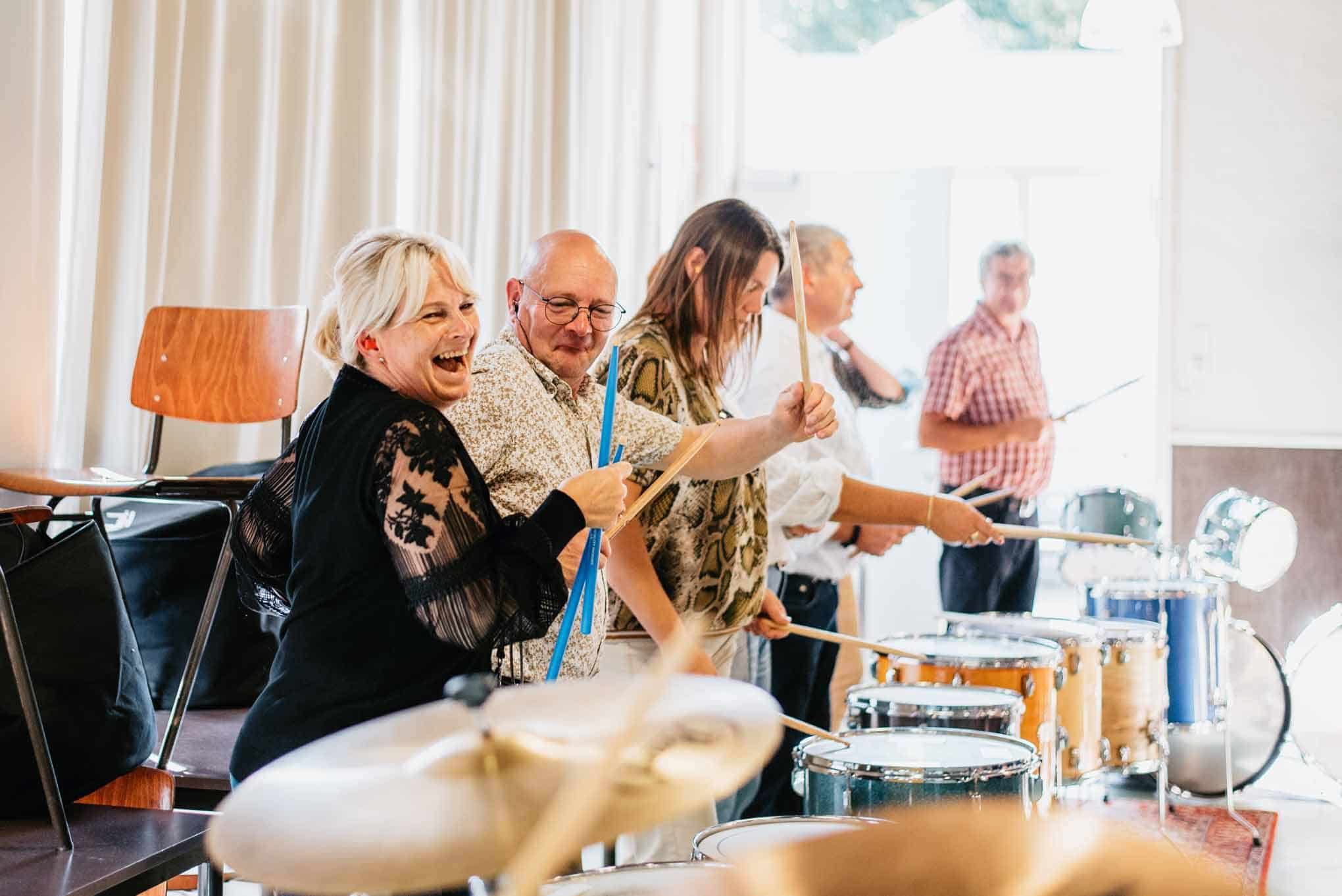 Notre atelier de batterie est une expérience super amusante et musicale pour tout le monde. Les participants s'amusent surtout et découvrent ce que c'est de faire de la musique ensemble. Même sans aucune connaissance musicale ou même avec un sens du rythme limité, tout le monde peut participer facilement. L'accent est mis principalement sur le plaisir partagé, mais des liens sont également établis avec le travail d'équipe. Avec notre animateur d'atelier expérimenté et sympathique Ruben, vous vivrez un atelier inoubliable. Pour certains, cela a même été un tremplin vers un nouveau passe-temps musical!