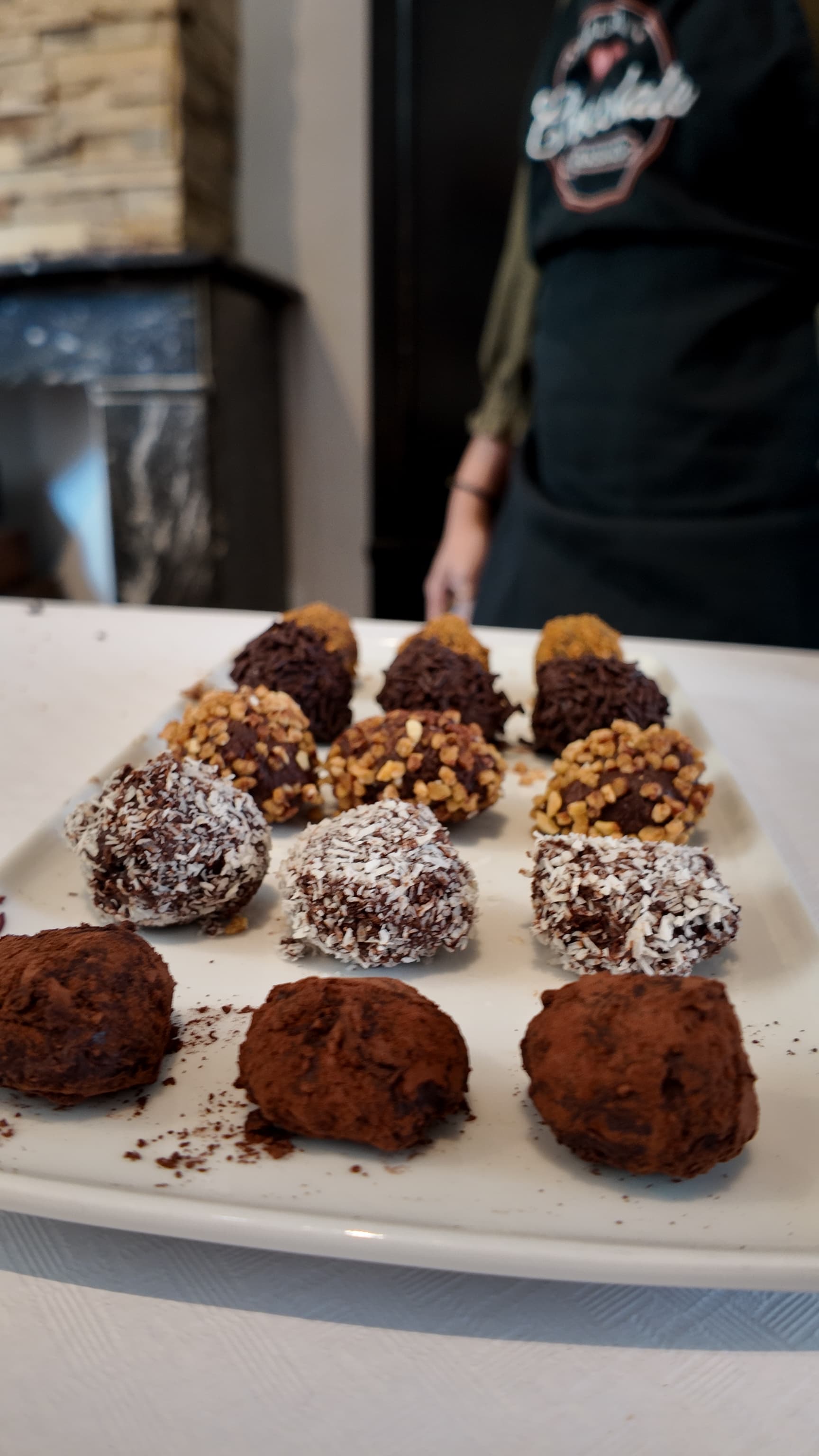 In groepen van 2-3 leer je hoe je heerlijke chocoladetruffels helemaal zelf kunt maken, verrijkt met een grote selectie aan toppings. Aan het begin van de les legt je gastheer het recept uit en laat hij je het stap-voor-stap proces zien, waarna het jouw beurt is om het zelf te doen en je eigen chocoladetruffels te maken! Terwijl we wachten tot de chocoladetruffels in de koelkast hard worden, zullen we kletsen en nippen van een van de beste warme chocolademelk! Vervolgens krijg je de kans om je truffels te bedekken met een verscheidenheid aan coatings, zoals geraspte kokos, speculooskoekjes, cacaopoeder en meer! Aan het einde van de workshop krijg je de kans om je eigen truffels in te pakken en mee te nemen! Of je ervoor kiest om ze te delen of ze allemaal zelf op te eten (we zullen het niet verklappen!), deze ambachtelijke truffels zullen een heerlijke herinnering zijn aan je chocolademaakkunsten.