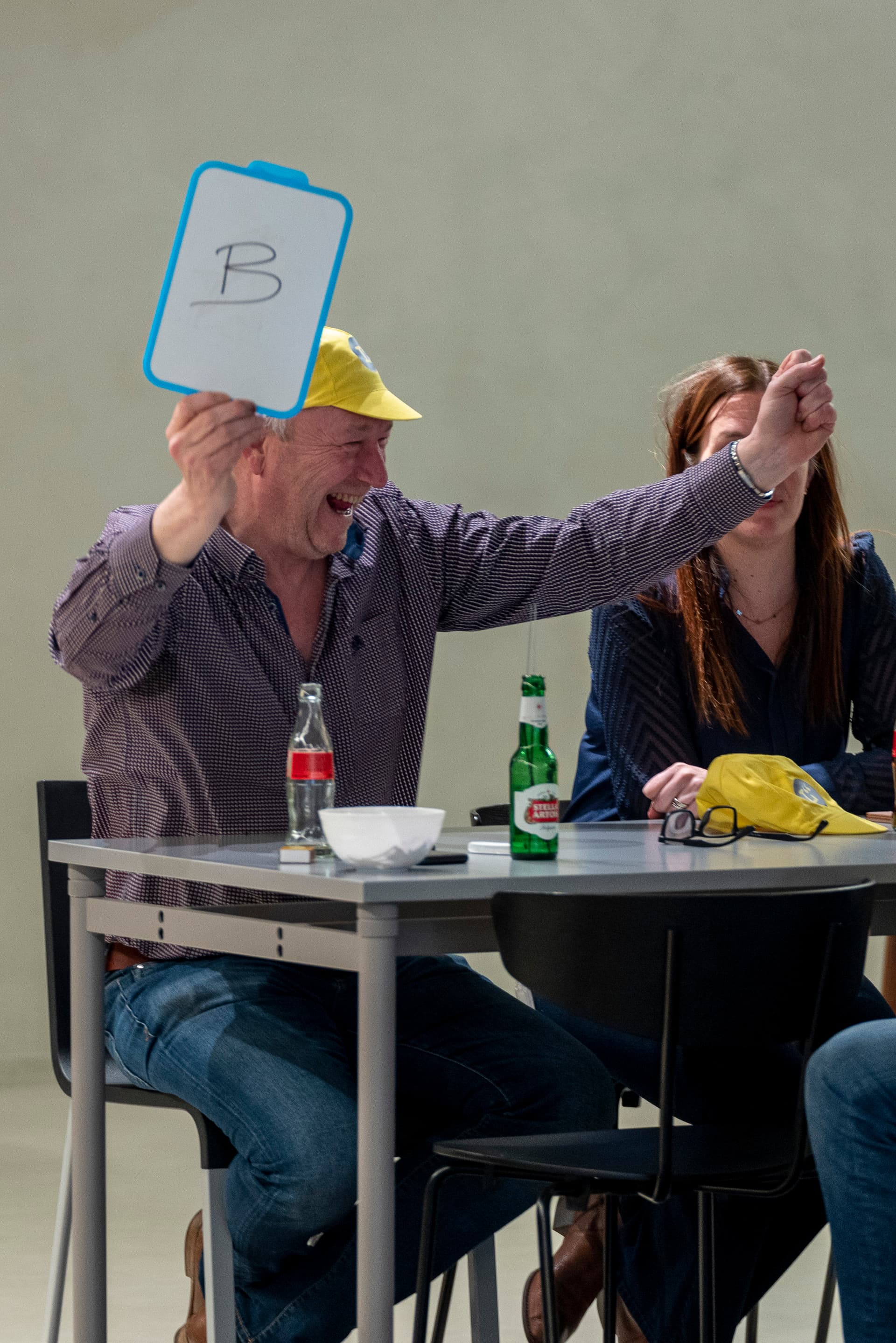 Inderdaad, geen saaie feitenkennis. Wel gekke fun facts en vragen die speciaal zijn opgesteld op basis van een vragenlijst die iedereen vooraf invult. Het komt dus aan op inschattingsvermogen en groepsgevoel. De opdrachten testen de behendigheid en de teamspirit van de deelnemers.