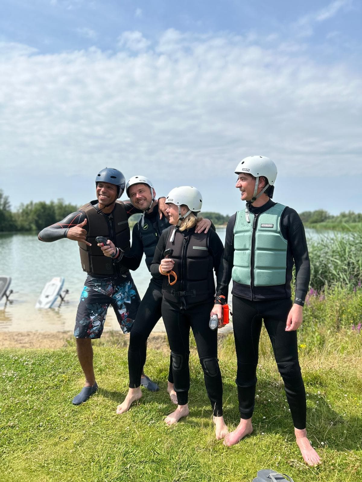 Eerst krijg je een korte uitleg aan land en daarna gaan we met 4 eFoils het water op en bouwen we geleidelijk op om in de lucht te kunnen vliegen. Een andere groep kan terwijl op SUP's de anderen aanmoedigen. Er is de mogelijkheid om extra spelletjes (kubb, petanque, spikeball en badminton) te voorzien zodat iedereen een leuke dag heeft en niemand hoeft te wachten.