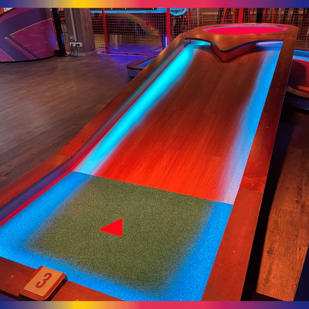 We hebben veel nieuwe technologieën toegevoegd en dat allemaal in een leuke en stijlvolle ruimte! 9 holes met verschillende regels, bonussen en strategieën om het spel spannender te maken! Tot het laatste moment is niets verloren dankzij een dynamisch puntensysteem. De spanning van de competitie blijft tot je laatste slag! In een gezellige, relaxte sfeer herontwerpt ons recreatiepark het traditionele minigolf en biedt het je een unieke ervaring, waarin entertainment, gezelligheid, competitie maar vooral plezier centraal staan. Vergeet papier en pen en focus op het belangrijkste: het spel. Of je nu een beginner bent of een ervaren speler, onze verschillende parcours passen bij elk vaardigheidsniveau.