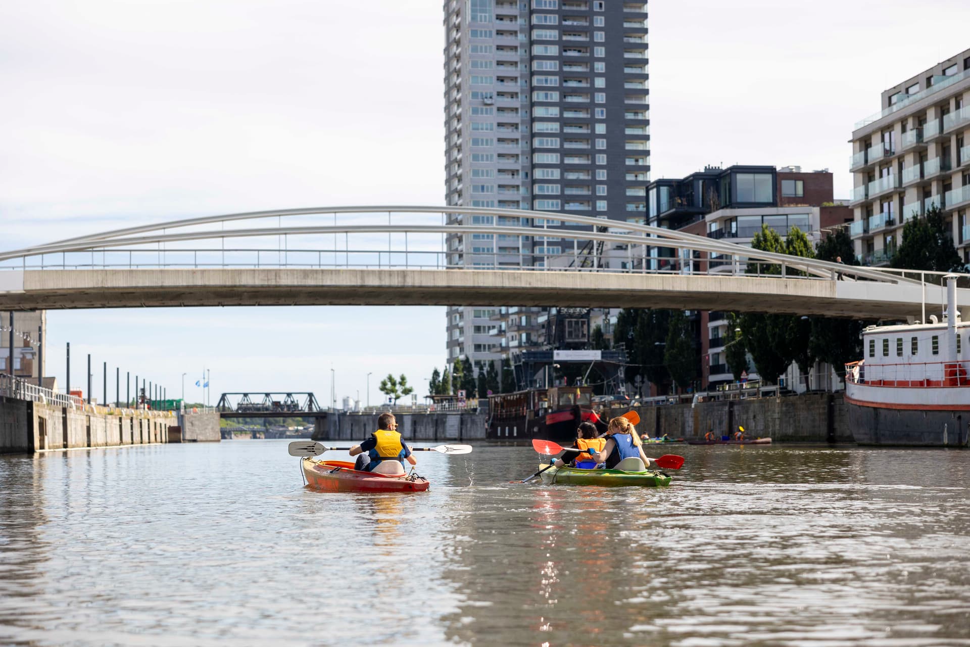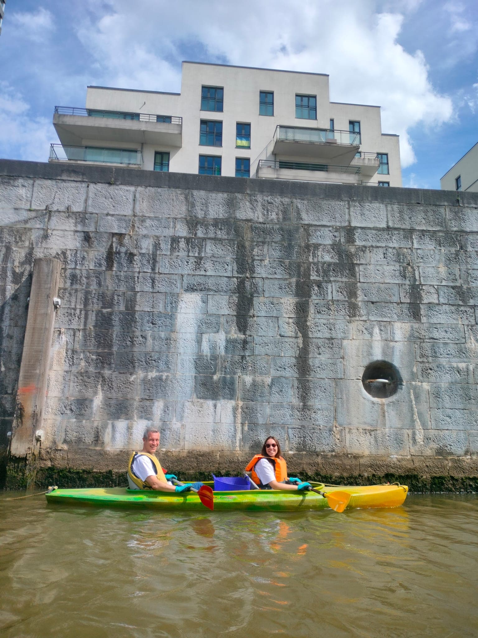 Kajaktocht van ongeveer 40 minuten op het kanaal in Brussel, terwijl jullie afval uit het water verwijderen.