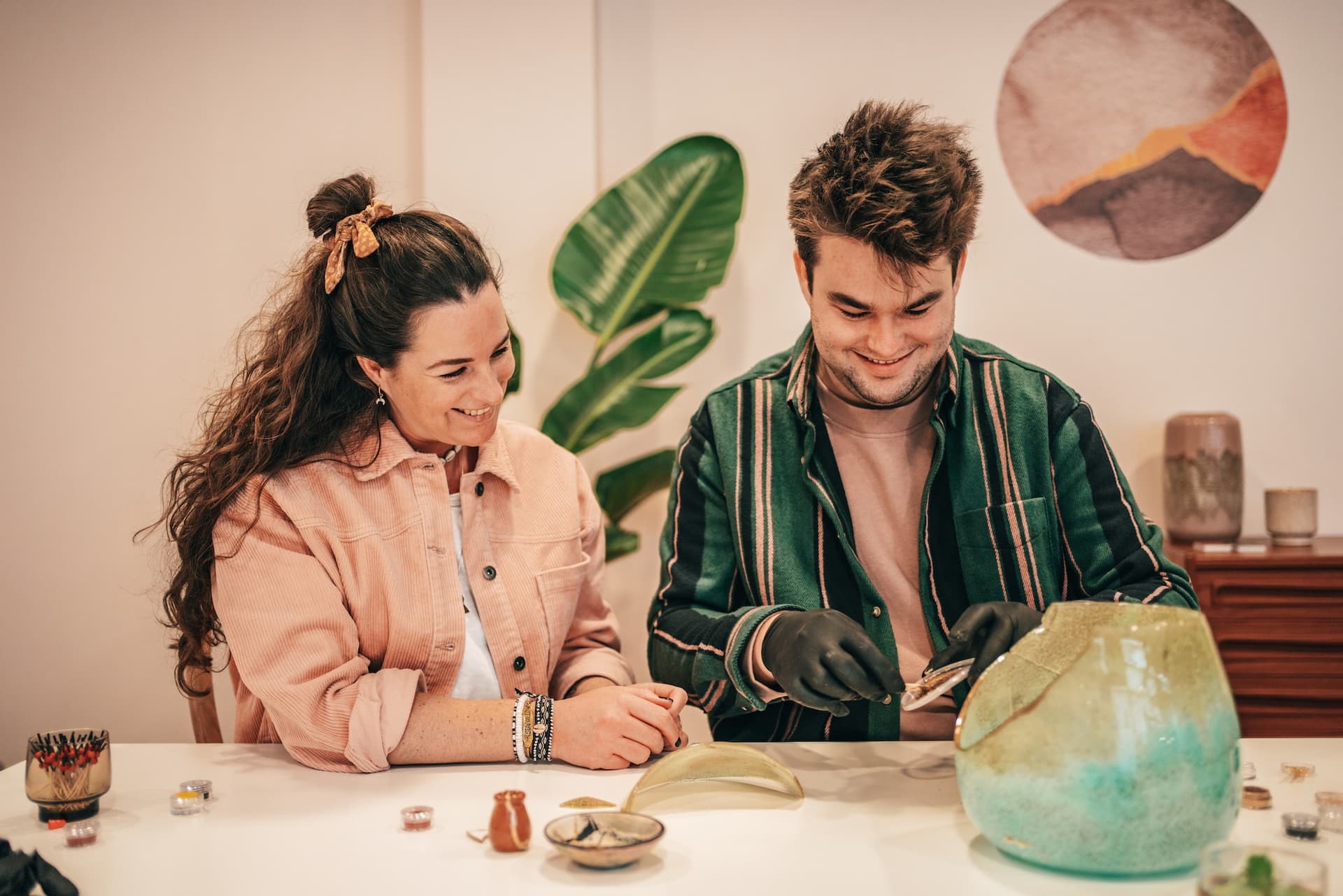 Kies voor een feel-good & mindful activiteit! Eerdere ervaring of kennis zijn niet nodig. Kintsugi is de Japanse kunst om gebroken objecten met gouden lak te herstellen zodat de herstelde items net mooier worden, niet ondanks maar dankzij hun gouden barsten. Kintsugi is gebaseerd op de filosofie van Wabi-Sabi; het omarmen van imperfecties.