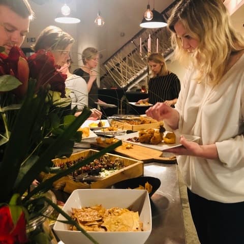 Samen eten in privé kader in een industrieel pand aan een lange tafel OF voor grotere groepen in walking dinner-stijl