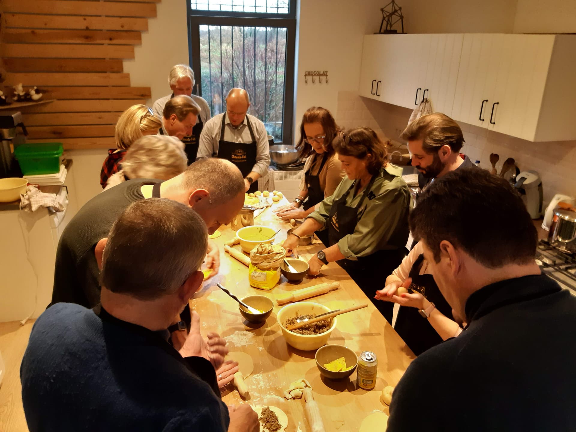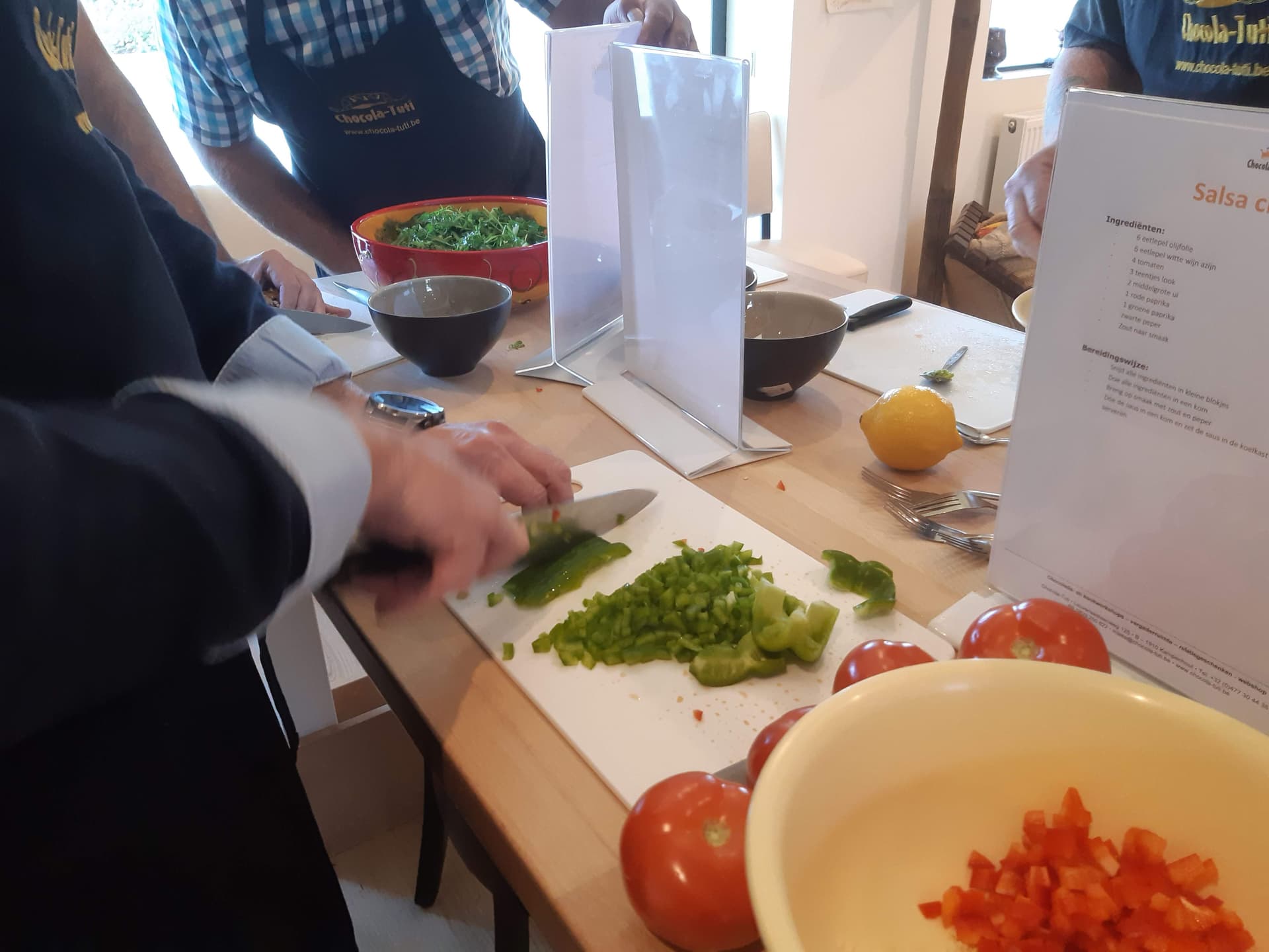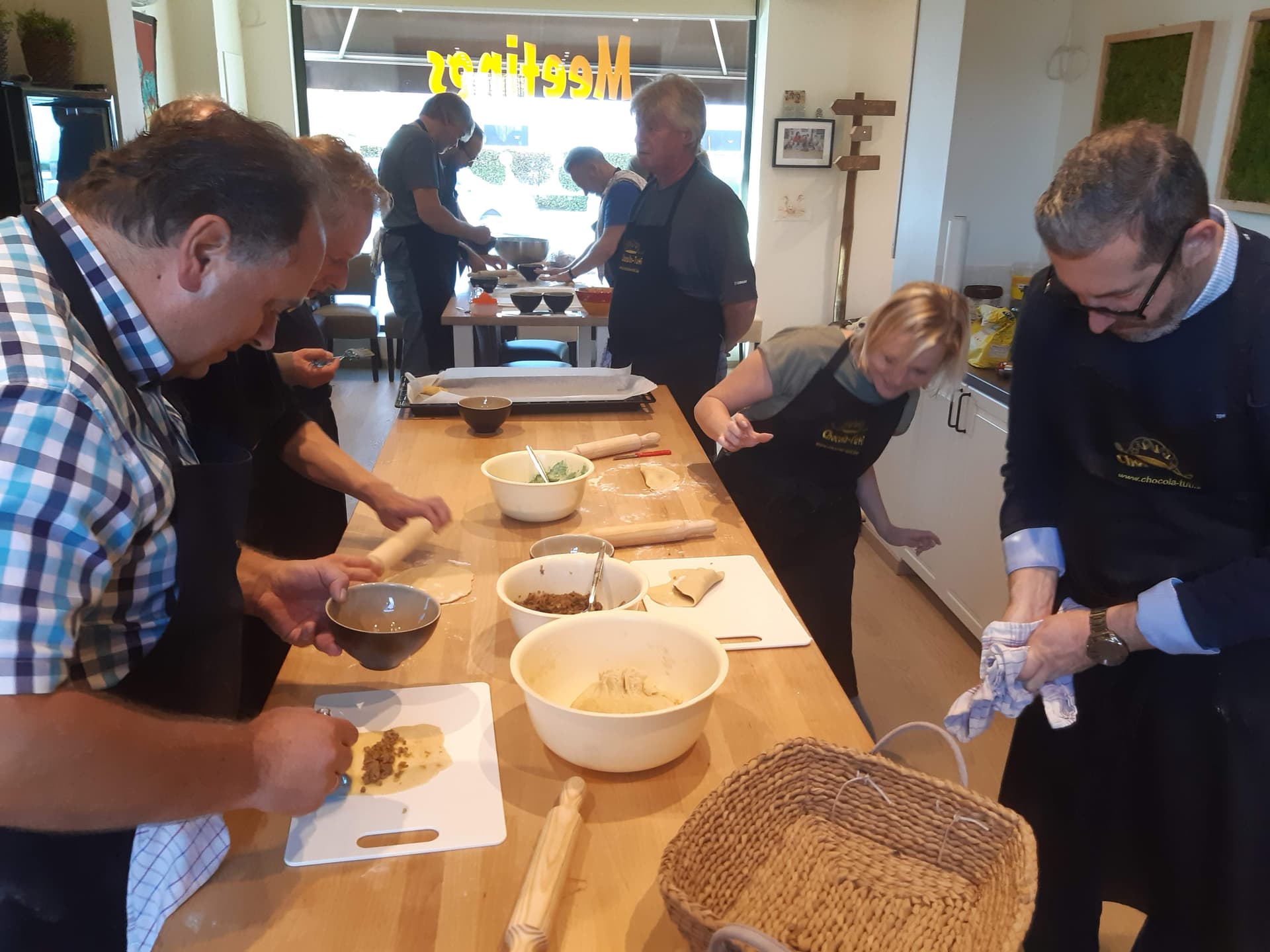 Terwijl enkele collega’s zich ontfermen over het deeg en gaan de anderen slaatjes en sauzen maken, alsook chili con carne. Een zoete toets mag daarbij natuurlijk niet ontbreken. Zo komen jullie samen tot verrassende smaken. Zijn de vullingen klaar en staat het deeg op punt? Dan is het tijd om samen de empanada’s te vullen. Laat je creativiteit de vrije loop en leef je uit met empanada’s in de vorm van een halvemaan, een vierkant of een driehoek. Wees creatief en waan je vooral als een echte chef!