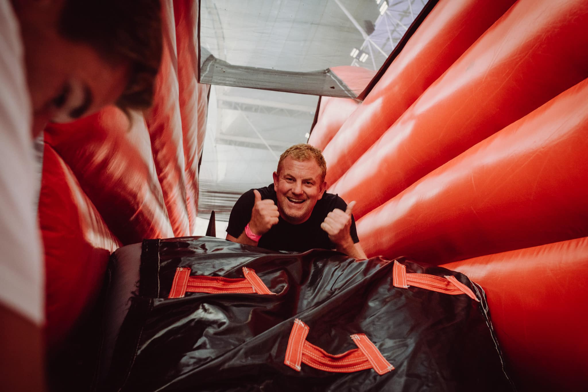 WARNING! Je bedrijf werd zonet gehackt door Anonymous! Om het anti-virus volledig te downloaden zal je moeten samenwerken zoals nooit tevoren. Er zal op 2 fronten moeten worden gestreden en gecommuniceerd: een deel van je team zal ons opblaasbaar hindernissenparcours moeten trotseren terwijl de rest de tijd probeert te vertragen door verschillende non-fysieke opdrachten op te lossen. Dit concept laat niemand onbewogen en roept iedereen op om voor hetzelfde doel te gaan. Time’s running out!