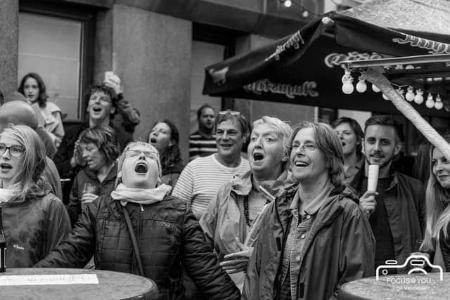 Een singalong is er voor iedereen, even verbindend als maizena! Je hoeft geen zangervaring te hebben. Iedereen heeft een stem. De begeleiders zorgen voor een ontspannen sfeer vol humor in wat zij ‘zangopzweperij’ noemen.