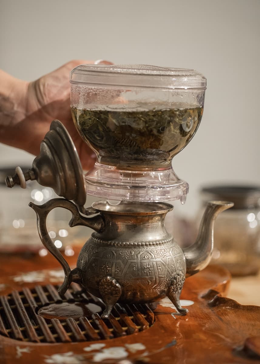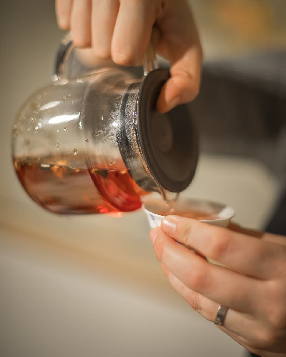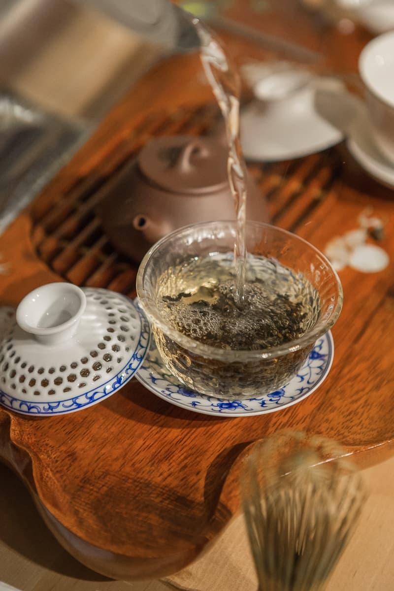 We verwennen je zintuigen met een verrassend assortiment aan zoetigheden gecombineerd met aangepaste theeën uit de mooiste culturen van deze wereld: China, Japan en Sri Lanka. Vanaf de eerste seconde dat je hier binnenkomt, trakteren we je op een heerlijk thee aperitief met een hartig hapje, de toon is alvast gezet! Vervolgens proef je heel veel verschillende soorten thee, zacht, stevig en soms wat wrang. Wat denk je van een heerlijke thee met een huisgemaakte truffel, of een jasmijn thee met een vers gebakken cheesecake? En dan zwijgen we nog over de Dongding thee met ijs en de ganache vulling van matcha.