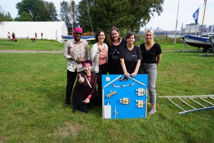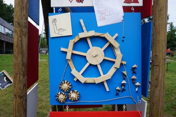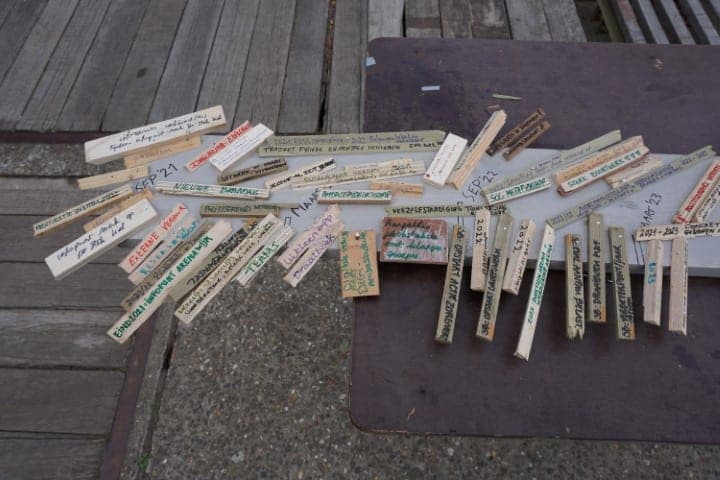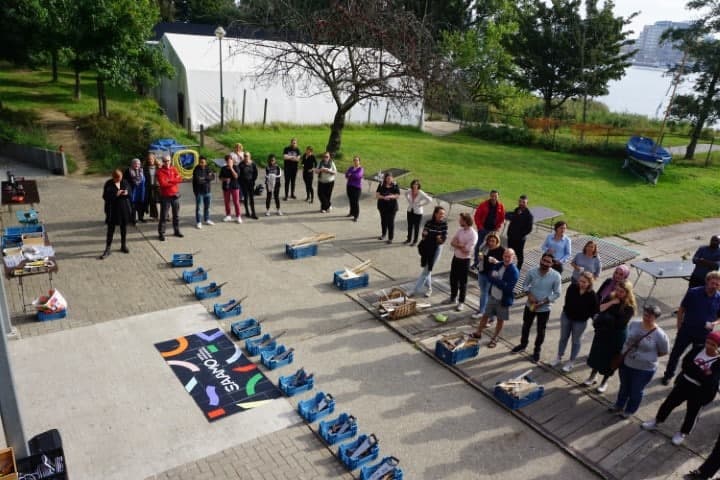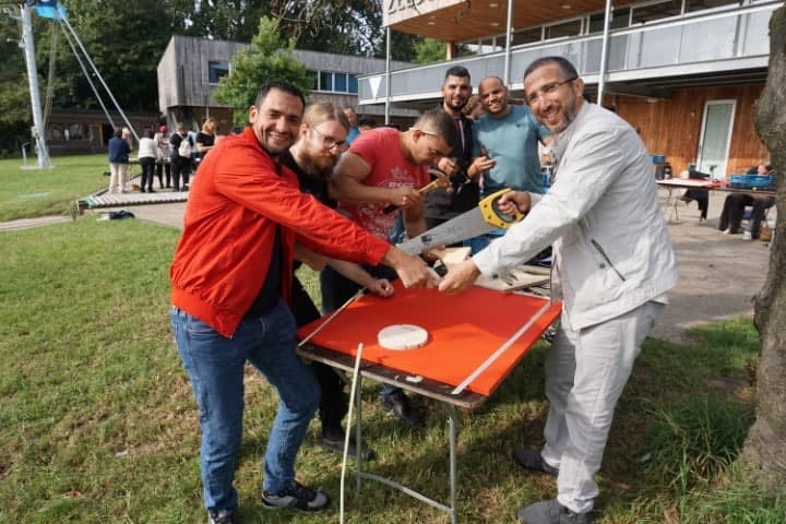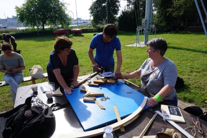 In kleine groepen werken de deelnemers in een creatieve werkplaats met hamers, zaagjes, nagels, gekleurde panelen en houten latjes. Ze geven hun antwoorden vorm in een artistieke en beeldende creatie. Elke groep bekleedt een paneel, waarbij verbeelding en samenwerking centraal staan.