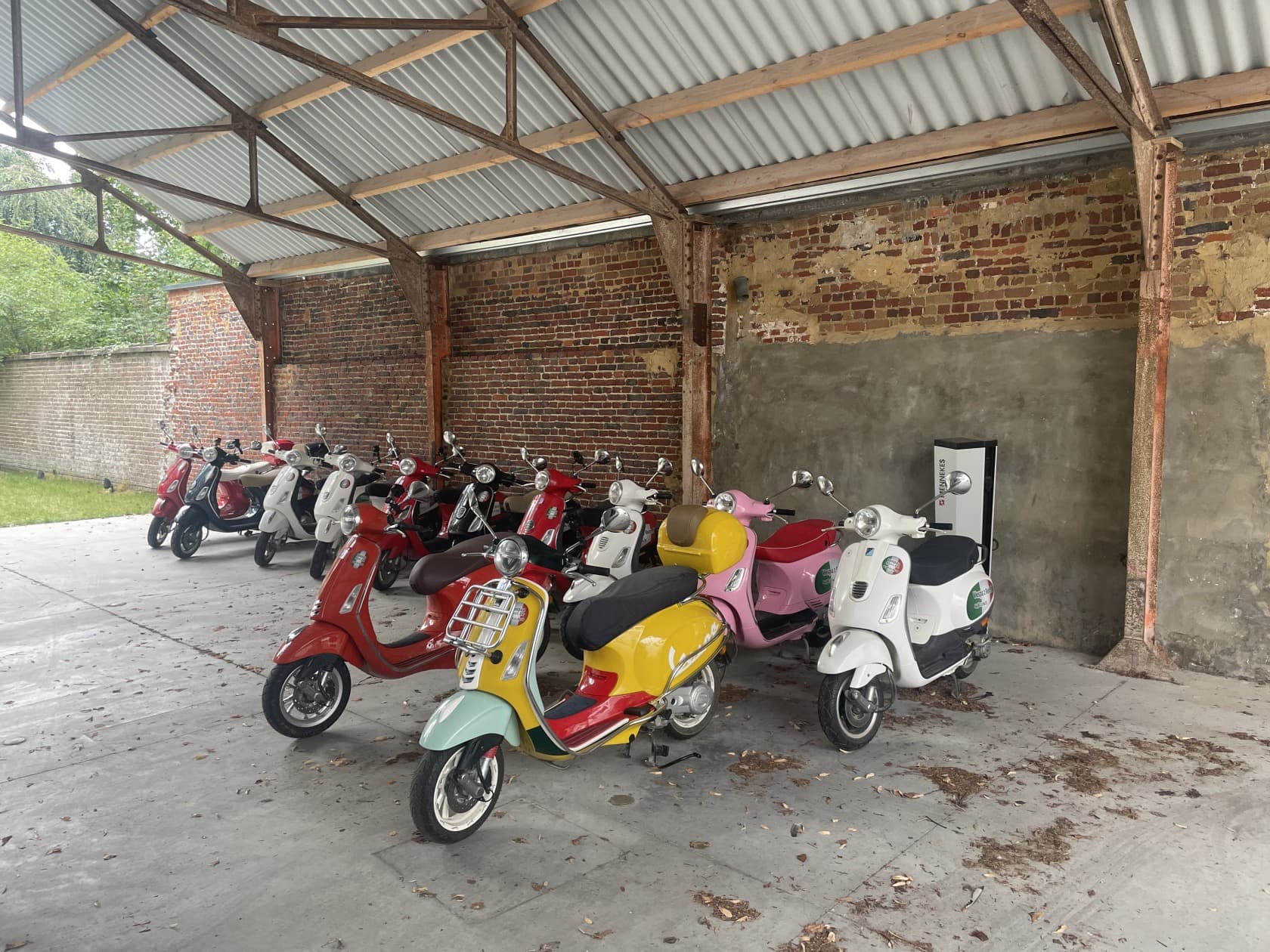 We kunnen tot 30 vespa's op locatie brengen. De prijs is inclusief benzine, helmen en gps.