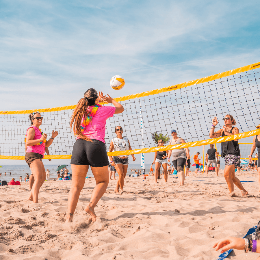Beachvolleybal is een spel waarbij het doel is om de bal binnen de lijnen op de grond van de tegenstander te krijgen. Het is een toegankelijke activiteit voor iedereen en een ervaring waar mensen met plezier op terugkijken.