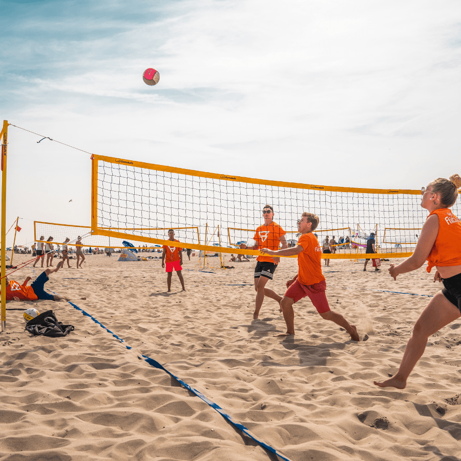 Geniet van de zon en het zand onder je blote voeten terwijl je gezellig een potje volleybal speelt met collega's. Woon een volledig georganiseerd tornooi bij in Scheveningen.