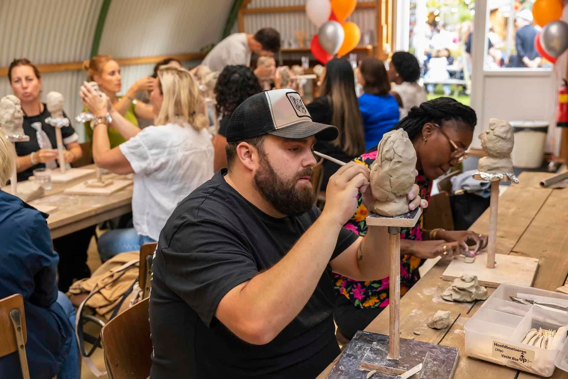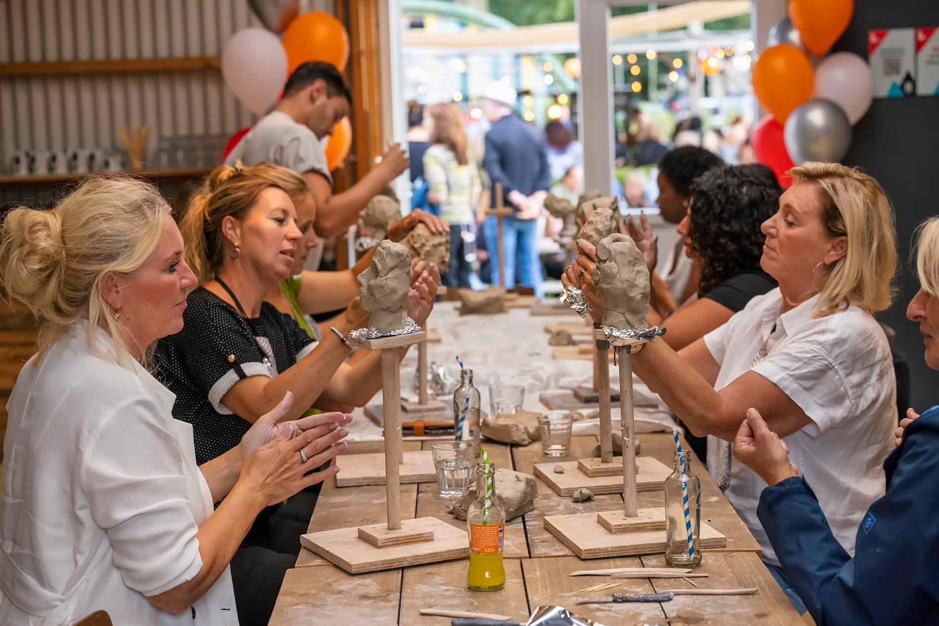 Door de aanwijzingen van de docent leer je heel erg snel de specifieke kenmerken van die persoon herkennen, wat al hilarisch kan zijn, en die maak je dan ook nog na. Hierdoor lijkt jouw kleiwerk in no-time écht heel erg! Wat een duf uitje denk je, niets is minder waar! Echt waar, zelfs de minst creatieven krijgen een spetterend resultaat! Het is zo gaaf om te zien hoe iedereen hier mee bezig is tussen de lachsalvo’s door. Het resultaat gaat natuurlijk mee naar huis en elke keer als je de kleikop weer ziet staan, kun je er weer om lachen.