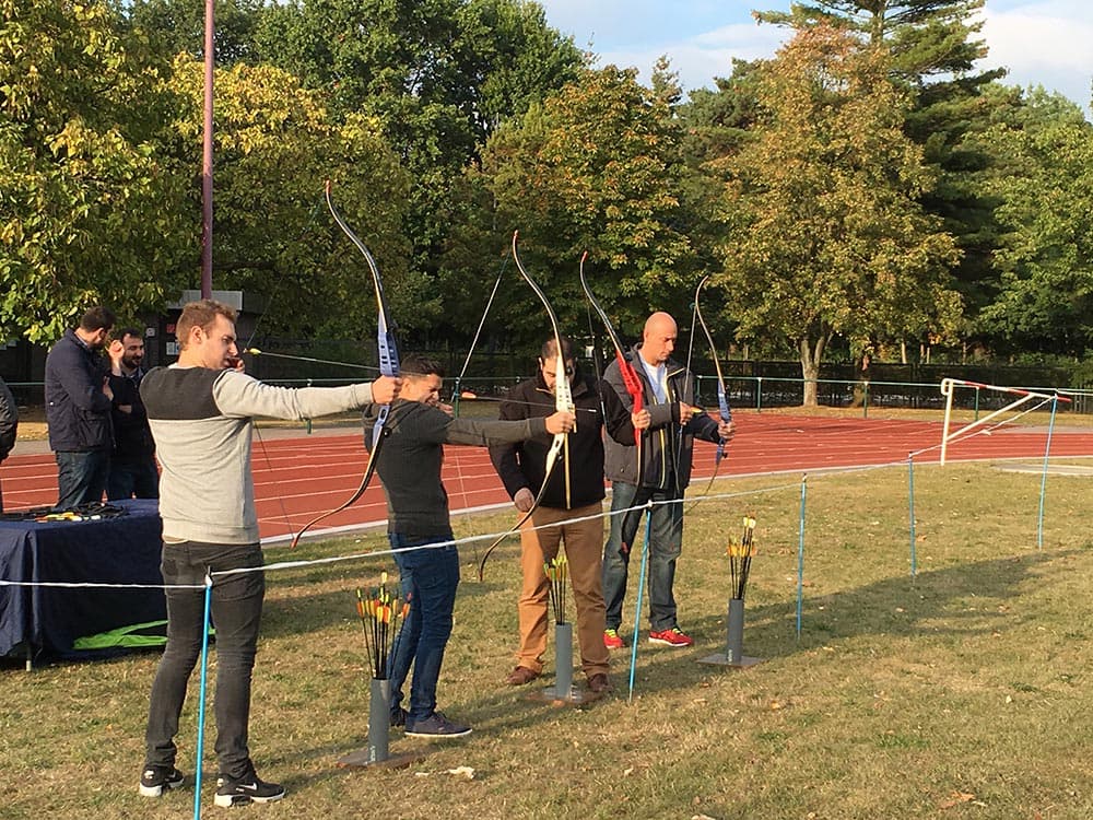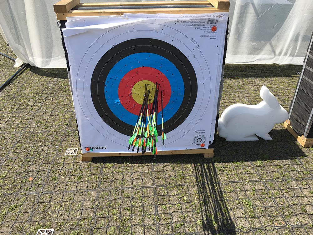 Het duel zal uitgevoerd worden met de recurve boog. Eerst schieten de deelnemers een aantal oefenpijlen. De animator zal vervolgens de schiethouding van de schutters optimaliseren. Het is zeker niet eenvoudig, maar men kan zich snel verbeteren. Na een aantal pijlen zal blijken dat men zich steeds meer vertrouwd voelt met de houding en het schieten.
