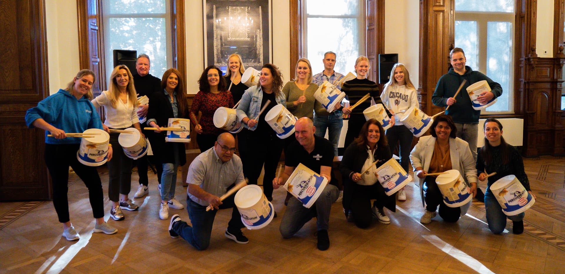 Bucket drumming werkt met elektronisch versterkte instrumenten en onze eigen geluidsinstallatie. Houd rekening met geluidsoverlast naar bv. andere ruimtes.
