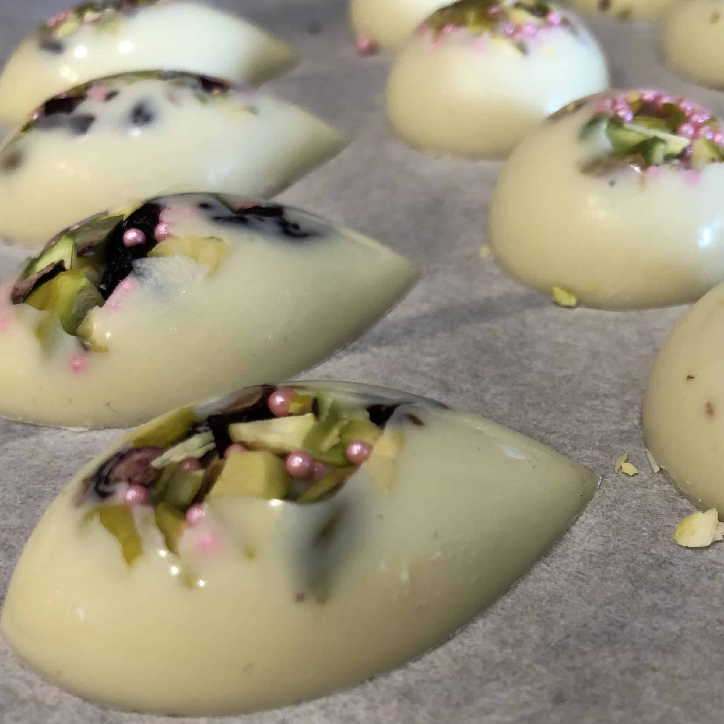 Er wordt chocolade gesmolten in de smaak die je prefereert (melk, puur of wit). Met deze chocolade gaan we massieve bonbons maken gevuld met smarties of nootjes en krijg je uitleg hoe je chocolade moet verwerken om na het smelten weer heerlijke knapperige en glanzende chocolade te krijgen.