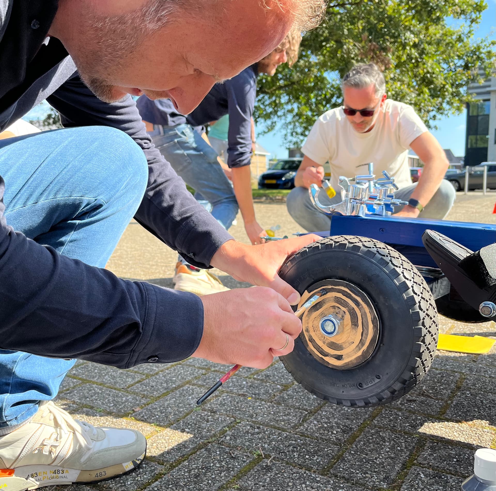 Je kan je zeepkist naar eigen smaak vormgeven en nadat de bouw is voltooid, ben je klaar om de race aan te gaan. Tijdens de race staan jullie, als een echt Formule 1-team, voor de uitdagingen van de pitstraat. Wie zal er als winnaar uit de bus komen en de champagnedouche ontvangen? Tijdens dit teamuitje gaan tactiek, plezier en een vleugje sportiviteit hand in hand. Je team zal eerst de puzzel oplossen en van losse materialen een rijdend voertuig maken. Daarna is het tijd om de zeepkist een unieke uitstraling te geven. Laat je creativiteit de vrije loop! Je hoeft geen ervaren klusser te zijn, een beetje ruimtelijk inzicht en gezond verstand zijn alles wat je nodig hebt. Bij het bouwen van de zeepkisten is een goede planning essentieel en om het parcours met de speciale opdrachten te overwinnen, is een goede taakverdeling onmisbaar. Hoe zullen jullie de race plannen?
