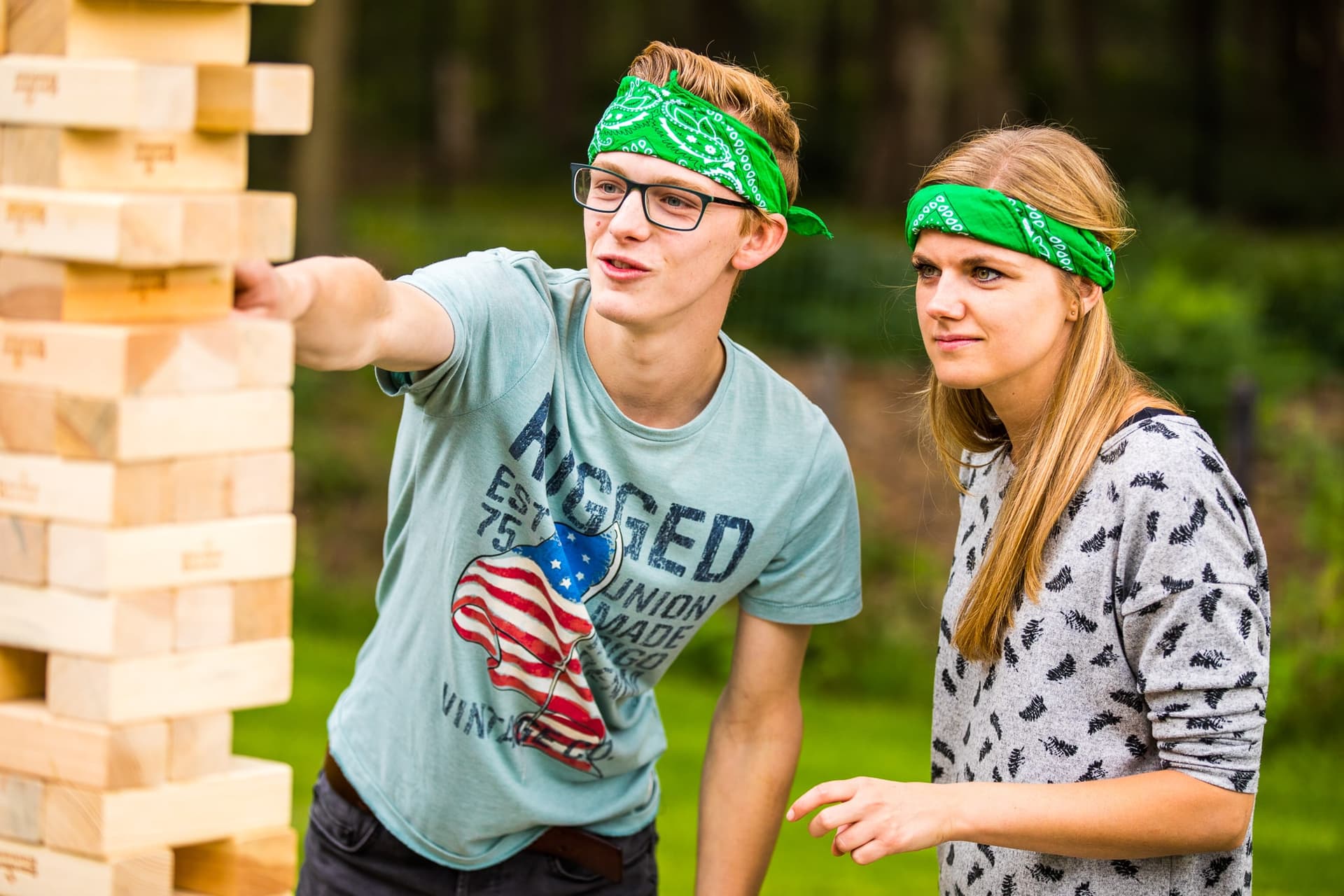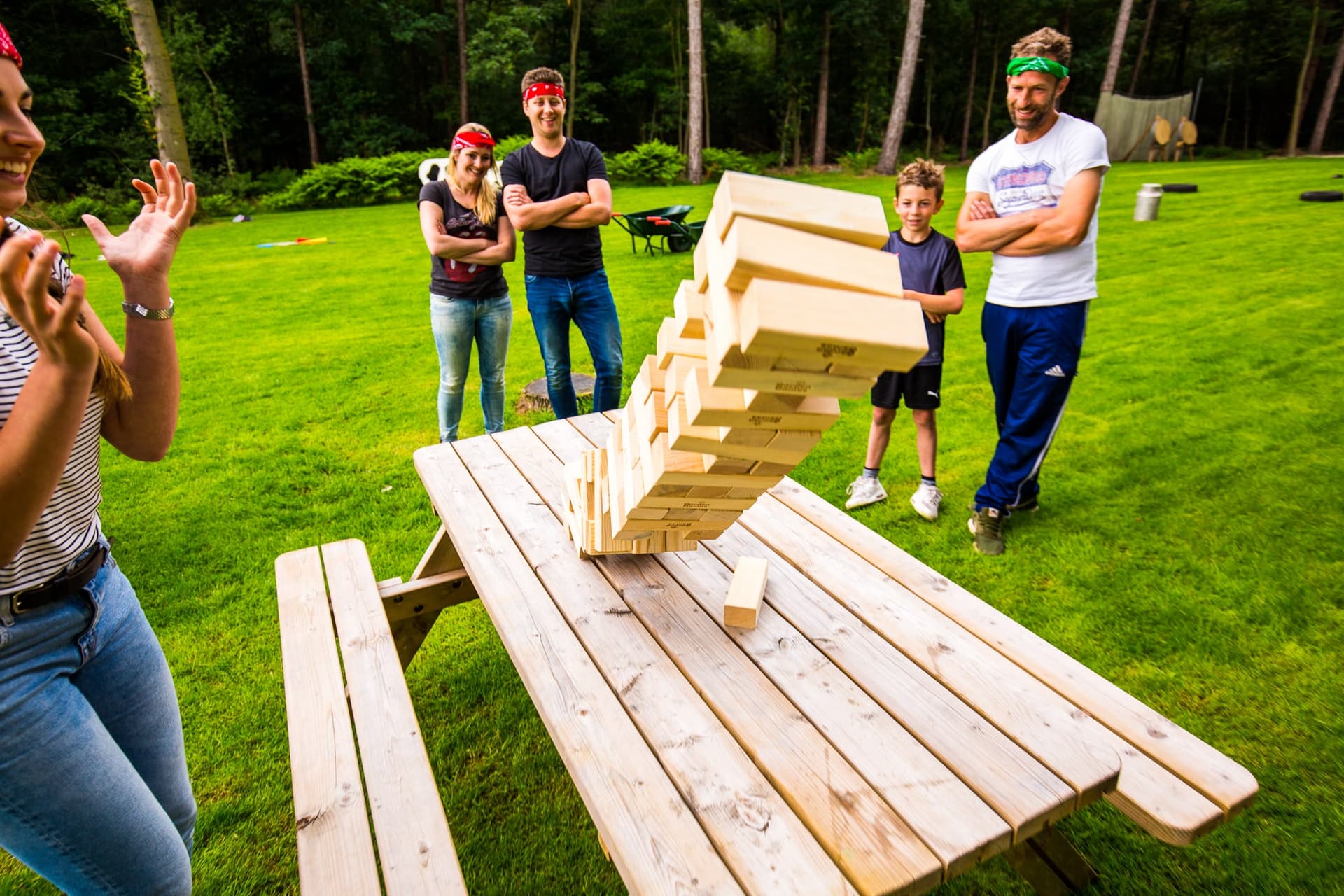 Jenga XXL: Probeer een zo'n hoog mogelijke toren te bouwen zonder dat hij omvalt. Je kunt nog extra punten verdienen door bepaalde blokken uit de jenga toren te halen.