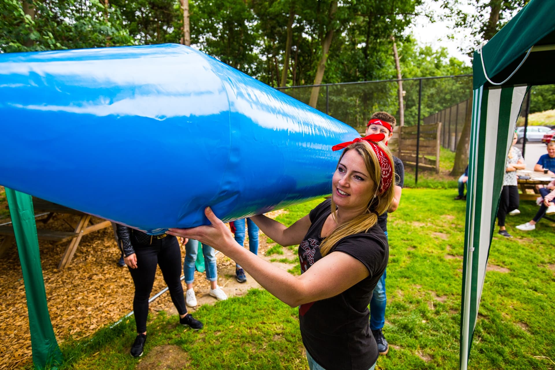 Reuze pictionary: Een mega opblaasbaar potlood heb je in de hand en tekenen maar. Raad snel wat je teamgenootje tekent.