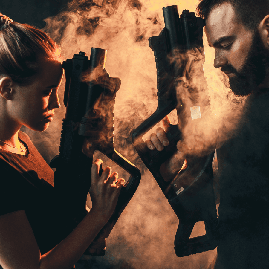 Maar wat ons evenement echt onderscheidt, is de totale onderdompeling in de ervaring. Met de rook die om je heen wervelt en de laserlichten die de omgeving verlichten, vergeet je al snel dat je je eigenlijke omgeving achter je hebt gelaten. De spanning wordt versterkt door de opzwepende achtergrondmuziek die je bloed sneller doet stromen en je energie opvoert. Je bent niet langer gewoon een speler, maar een actieheld in je eigen avonturenfilm.