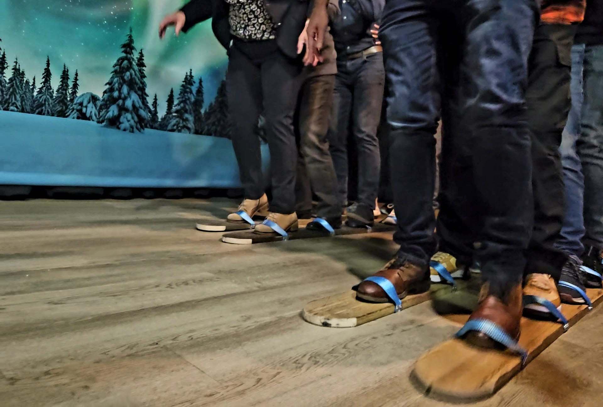 Familie Ski Lopen: trek met je team in reuzenski’s over het parcours. Coördinatie is alles – hilarische valpartijen gegarandeerd!